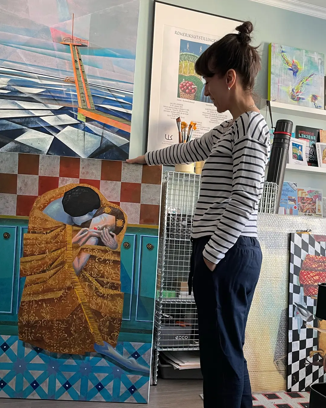 Veronika Varga har en unik strek med geometriske former og med en teknikk som kan minne om typisk Art Deco spraydekor.